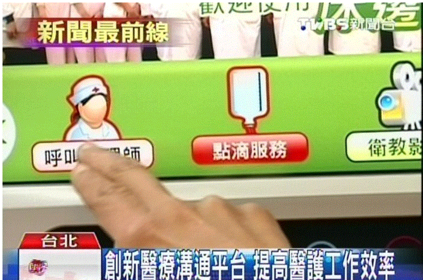 透過床邊服務系統,病人只有在螢幕上觸控一下,就能得到需要的照護。